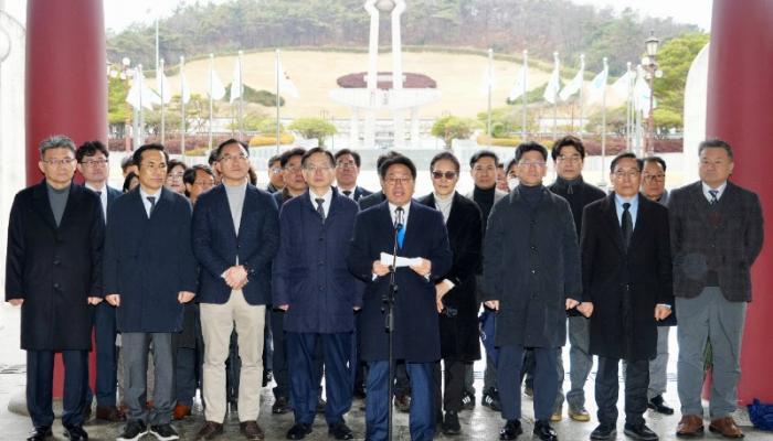 ‘전남광주통합특별시 설치를 위한 특별법’이 지난 1일 밤 국회 본회의를 통과하면서 광주전남의 통합이 본궤도에 올랐다.강기정 시장 등 광주광역시 간부들과 공공기관장들은 2일 북구 국립5·18민주묘지를 참배한 뒤, 민주의문 앞에서 통합특별법 국회 통과 환영 입장문을 발표했다. 이들은 “광주전남 역사에 새로운 이정표가 세워졌다...