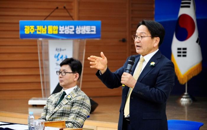 광주광역시(시장 강기정)는 9일 보성군청 대회의실에서 ‘광주·전남 통합 보성군 상생토크’를 개최하고, 통합 이후 보성 발전 방향을 군민들과 공유했다.이날 행사는 광주시가 전남 시·군민과 직접 소통하기 위해 마련한 통합특별시 상생토크다. 보성 상생토크에는 강기정 광주시장과 김철우 보성군수, 김경열 보성군의회 의장을 비롯해 보성군 관계자, 보...