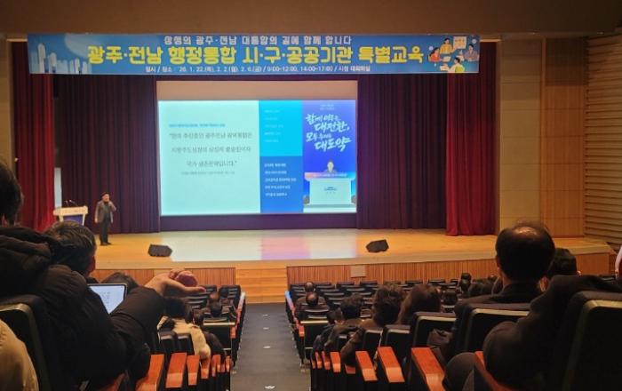 광주시가 전체 공직자들을 대상으로 ‘광주전남 통합 특별교육’을 실시한다.광주광역시 인재교육원은 1월22일부터 2월6일까지 총 6차례에 걸쳐 시와 5개 자치구, 공공기관 소속 공직자 4000여명을 대상으로 ‘광주전남 통합 특별교육’을 실시한다. 이번 교육은 광주전남 행정
