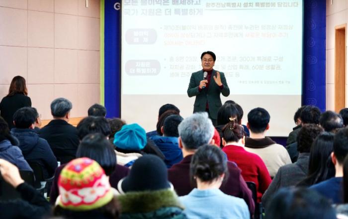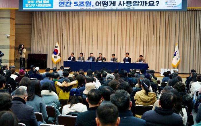 광주광역시(시장 강기정)는 광주광역시교육청, 광주광역시의회, 광산구, 광산구의회와 함께 23일 오후 광산구청 윤상원홀에서 ‘광주전남 통합 광산권역 시민공청회’를 개최했다. 이번 공청회는 권역별 시민공청회 세번째 일정으로, 광주와 전남의 접점이자 산업·교통의 중심지인 광