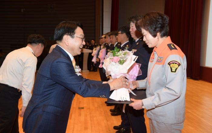 광주광역시 소방안전본부는 20일 시청 대회의실에서 ‘생명존중, 국민안전 최우선’을 주제로 ‘제5주년 의용소방대의 날’ 기념식을 개최했다.이 행사는 시민의 생명과 안전을 위해 헌신해 온 의용소방대원의 봉사와 희생정신을 기리고, 대원들의 사기 진작과 자긍심을 높이기 위해