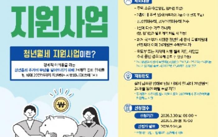 광주광역시는 경제적 어려움을 겪는 청년들의 주거 안정을 돕기 위해 ‘청년월세 지원사업’ 참여자 1900여명을 모집한다. 이 사업은 월 최대 20만원의 월세를 최장 24개월까지 지원하는 사업이다. 기존 한시사업에서 올해부터 계속사업으로 전환해 매년 정기적으로 운영한다.