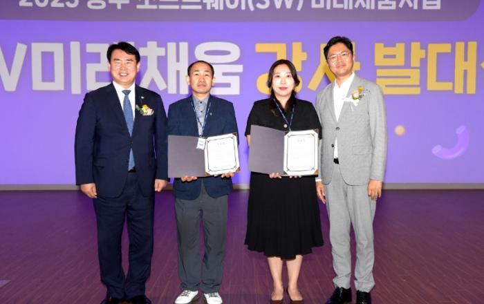 광주시가 소프트웨어 전문강사 64명을 성공적으로 배출, 7월부터 교육 현장에 투입한다.광주광역시(시장 강기정)는 18일 광주실감콘텐츠큐브(GCC)에서 김광진 시 문화경제부시장, 김용임 광주시의원, 이정선 광주시교육감이 참석한 가운데 ‘2023년 소프트웨어(SW) 미래채