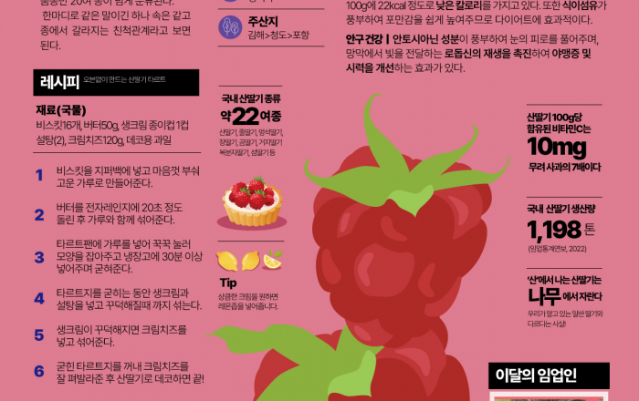 산림청은 매월 적극행정 추진을 위해 대표 임산물의 효능과 효과, 조리법 등을 소개하여 임산물의 우수성을 알리고, 올바른 임산물 구매를 안내하는 ‘이달의 임산물’ 시리즈를 추진하고 있다. ‘이달의 임산물’ 시리즈는 산림청 블로그에서 만나 볼 수 있다.