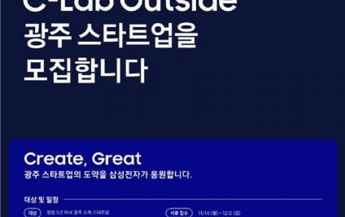 광주광역시는 삼성전자와 협의해 2023년부터 광주지역 창업기업 육성 프로그램인 ‘C-Lab 아웃사이드 광주’ 사업을 추진한다고 밝혔다.‘C-Lab 아웃사이드’는 삼성전자가 국내 우수한 스타트업 육성을 위해 2018년부터 서울에서 추진하고 있는 사업이다.이번 ‘C-Lab