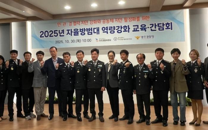 광주광역시자치경찰위원회는 30일 글로리아웨딩홀에서 ‘자율방범대 치안역량 강화 교육’을 실시했다.이번 교육은 자율방범대의 현장 대응능력과 협력 역량을 높이기 위해 마련됐으며, 자치경찰위원회·경찰청·5개 경찰서·자율방범연합회 등 100여 명이 참석했다.‘자치경찰제도의 이해
