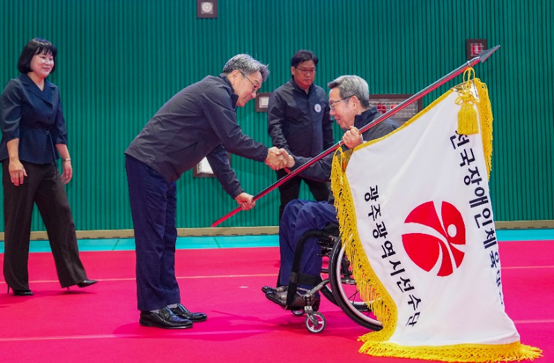 선수대표 선서는 이승후(배드민턴) 선수와 한다영(태권도) 선수가 나서 필승의 결의를 다졌다. 이승후 선수는 광주선수단의 최연소(15세) 선수로 현재 국가대표로 선발돼 활약 중이며, 한다영 선수는 오는 11월 개최되는 2025 도쿄 데플림픽(청각인 장애 올림픽) 국가대표로 출전을 준비하고 있다.