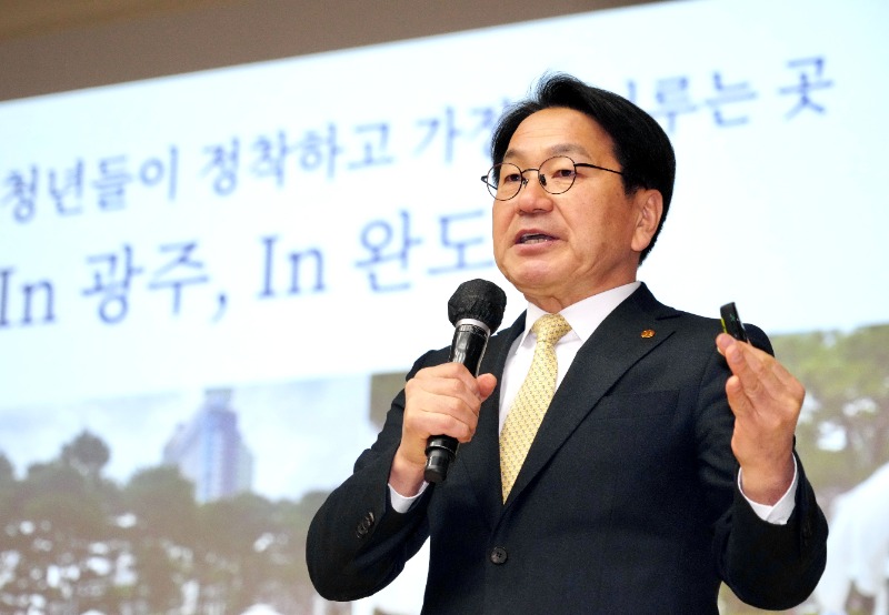 광주광역시(시장 강기정)는 10일 완도 생활문화센터에서 ‘광주·전남 통합 완도군 상생토크’를 열고, 통합 이후 광주-완도 상생발전 방안을 군민들과 공유했다.