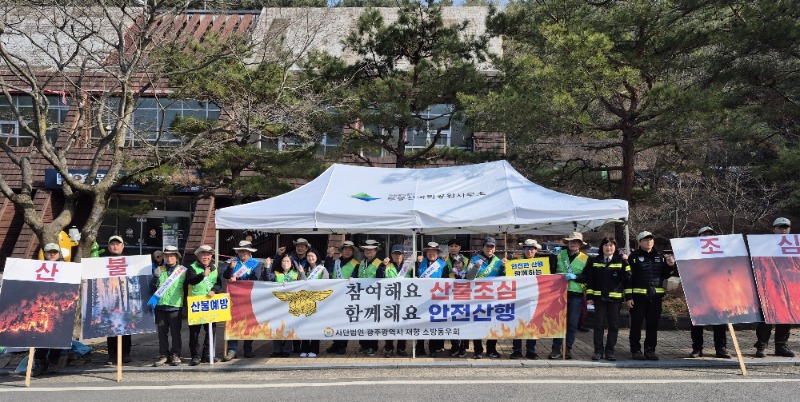 참여자들은 무등산 탐방센터 앞에서 어깨띠와 홍보 피켓을 활용해 등산객들에게 산불 예방 수칙을 안내하고, 산불조심 홍보 활동을 벌였다. 참가자들은 또 등산로 일대 환경정화 활동을 진행, 건전한 산행문화 정착과 자연보호 메시지를 전달했다.