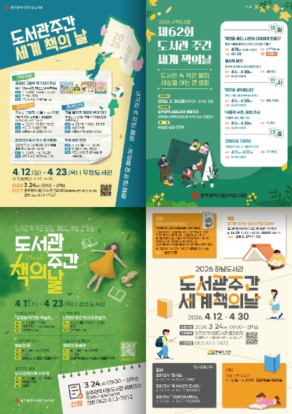 광주광역시 시립도서관(무등·사직·산수·하남)은 ‘도서관 주간’(4월 12∼18일)과 ‘세계 책의 날’(4월 23일)을 맞아 다양한 독서문화 행사를 마련, 3월 24일부터 참가 신청을 받는다.