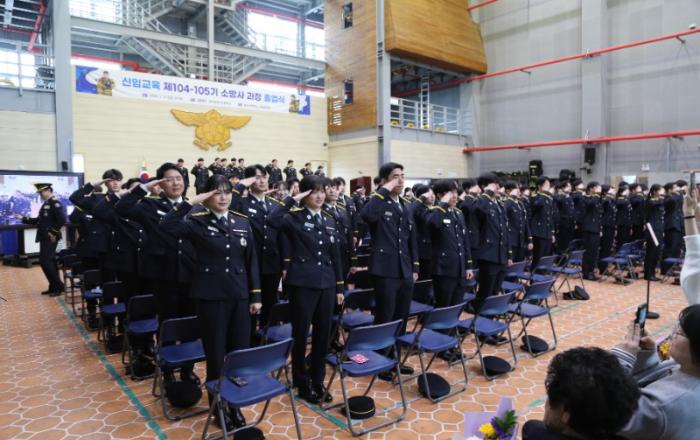 광주광역시 소방학교는 27일 교육훈련관에서 제104·105기 신임교육 소방사 과정 졸업식을 개최했다. 이날 졸업식에는 졸업생과 학부모, 교직원 등 300여명이 참석했으며, 신임 소방관에게 졸업증과 표창장이 수여됐다. 이번 졸업생은 광주 39명, 전북 36명, 창원 26