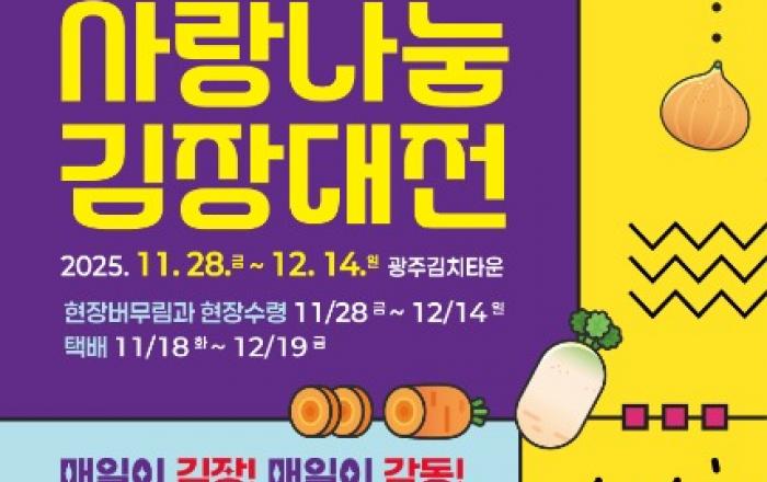 광주광역시(시장 강기정)는 오는 11월28일부터 12월14일까지 광주김치타운에서 ‘2025년 빛고을 사랑나눔 김장대전’을 연다.광주시는 시민들이 김장철을 앞두고 손쉽게 김장을 준비하고, 기업·단체의 기부문화 확산을 위해 지난 2014년부터 김장대전을 운영하고 있다.이번