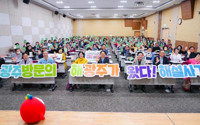 광주광역시(시장 강기정)는 28일 김대중컨벤션센터에서 역사·지질·여성·문화·관광 등에서 활동하는 해설사 150여명이 참석한 가운데 ‘해설사 역량 강화를 위한 통합 직무교육’을 실시했다.이번 교육은 광주시가 역점 추진 중인 ‘광주방문의 해’에 대한 이해를 높이고, 해설사