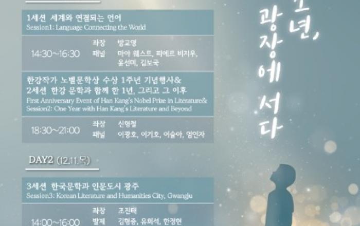한강 작품을 세계에 알린 번역가들이 노벨문학상 1주년을 기념해 광주에 모여 문학·민주주의 도시 광주의 가치를 함께 살핀다.광주광역시(시장 강기정)는 오는 10~11일 국립아시아문화전당 국제회의실에서 ‘한강작가 노벨문학상 수상 1주년 국제포럼(부제: 소년, 광장에 서다)