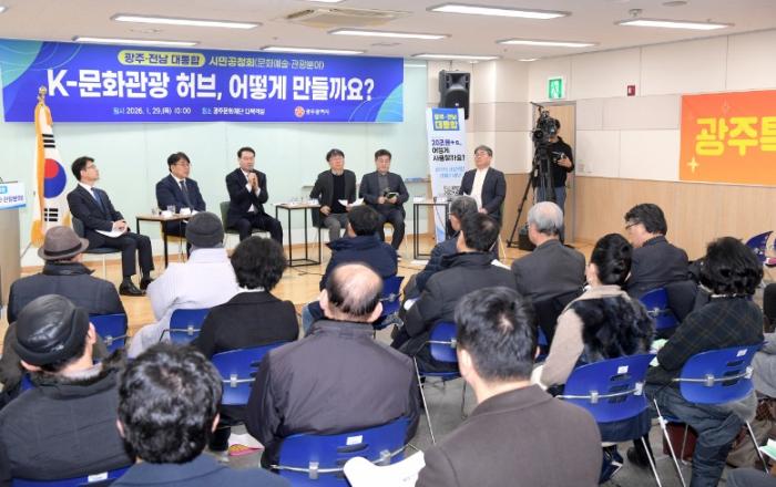 광주광역시(시장 강기정)는 29일 광주문화재단에서 문화·관광 기관 및 단체 관계자, 종교계 등 100여 명이 참석한 가운데 ‘광주전남 통합 문화예술·관광분야 시민공청회’를 개최했다.이날 공청회에는 김영문 문화경제부시장, 김광욱 광주연구원 매력도시연구실장, 광주예총, 광
