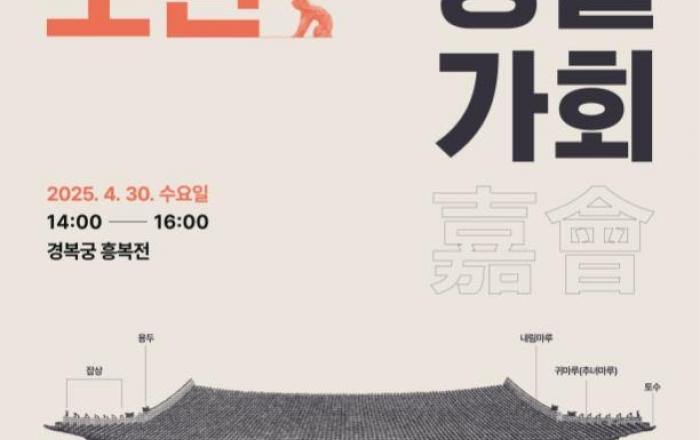 국가유산청 국립문화유산연구원 국립서울문화유산연구소는 오는 4월 30일과 9월 24일 오후 2시부터 4시까지 경복궁 흥복전(서울 종로구)에서 2025년 「도란도란 궁궐 가회(嘉會)」를 개최한다.지난해 첫 선을 보인 「도란도란 궁궐 가회」는 조선시대 궁궐과 관련된 다양