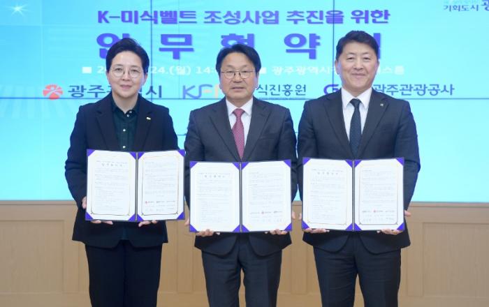 ‘2025 광주 방문의 해’를 맞은 광주시가 김치를 주제로 한 관광 프로젝트를 추진하는 등 시민과 방문객들의 눈길‧발길 사로잡기에 나섰다.광주광역시(시장 강기정)는 24일 오후 시청 비즈니스룸에서 ‘K-미식벨트 조성사업 업무협약식’을 개최했다.이날 협약식에는 강기정 시