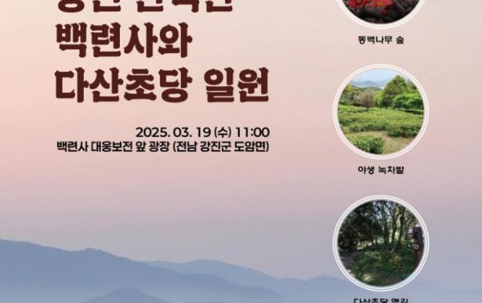 국가유산청은 3월 19일 「강진 만덕산 백련사와 다산초당 일원」을 자연유산 명승으로 지정하고, 이를 기념해 오전 11시부터 전남 강진 백련사에서 명승 지정 기념행사를 개최한다.「강진 만덕산 백련사와 다산초당 일원」은 백련사 초입에 위치한 만경루에서 내다보는 강진만과