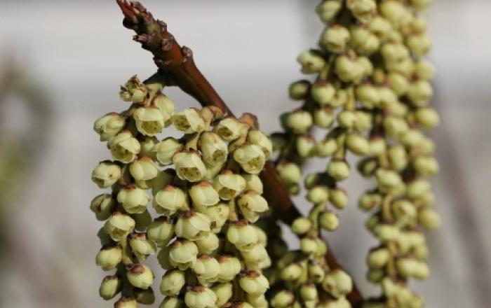 전라남도산림연구원 완도수목원은 완도호랑가시나무와 함께 지역명이 붙어 더욱 의미있는 ‘완도술꽃나무(Stachyurus praecox)’가 활짝 피어 완연한 봄 소식을 알리고 있다고 밝혔다.완도술꽃나무는 2018년 전남도산림연구원이 완도의 무인도에서 발견한 국내 미기록종
