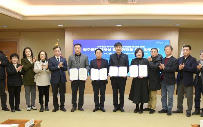 광주광역시(강기정 시장)는 24일 시청 비즈니스룸에서 광주관광협회, 광주여행사, 전세기 유치업체와 ‘광주공항 국제선 임시취항 업무협약’을 체결했다. 이날 협약식에는 강기정 시장을 비롯해 선석현 광주관광협회 회장, 황윤석 ㈜다크호스T&G 대표, 강혜련 탑클래스여행