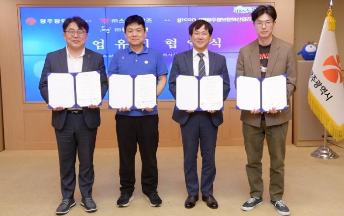 문화콘텐츠기업이 잇따라 광주에 둥지를 틀고 있다. 광주시가 콘텐츠기업유치협의체를 구성해 ‘아시아문화중심도시 투자진흥지구’의 풍부한 세제 혜택과 자금 지원을 앞세워 기업 유치 활동을 적극 펼친 결실이다. 광주광역시(시장 강기정)는 25일 시청 비즈니스룸에서 게임제작기업