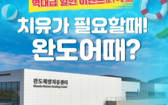 완도군은 여름 휴가철이 다가옴에 따라 많은 사람들이 완도해양치유센터에서 지친 몸과 마음을 치유할 수 있도록 이벤트를 풍성하게 준비했다. 먼저 한국관광공사의 ‘웰니스 관광 체험 주간’을 맞아 6월 한 달 동안 국내 대표 온라인 여행 플랫폼인 ‘여기어때’를 통해 완도해양