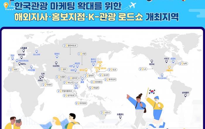 방한 관광 2000만 명 시대 개막과 방한 시장 다변화를 위한 마케팅이 공격적으로 확대된다.문화체육관광부는 방한 관광 회복을 가속화하고 ‘한국에서만 경험할 수 있는 한국 관광’을 세계 시장에 알리기 위해 ‘한국 관광 메가 로드쇼’를 전 세계 25개 도시에서 개최한다고