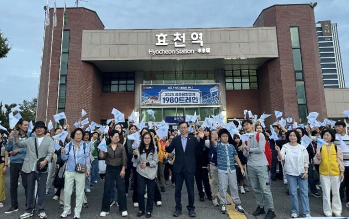 광주광역시(시장 강기정)가 주관하는 ‘2025 광주평화열차 1980 트레인’이 19일 오전 6시30분 효천역을 출발해 경기도 파주시 비무장지대(DMZ)로 향했다.이번 평화열차에는 340명의 시민이 탑승했으며, 1980년 5월 광주정신을 되새기고 평화와 통일의 가치를 직