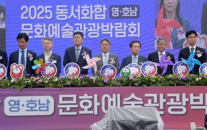 광주광역시(시장 강기정)는 전라남도와 함께 영호남지역 문화예술관광 교류를 통해 지역 간 화합과 상생을 도모하기 위해 ‘2025 동서화합 영호남 문화예술관광박람회’를 19일부터 21일까지 담양종합체육관 일원에서 개최했다.지난해 이어 두 번째 열린 이번 박람회는 동서화합을