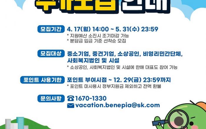 문화체육관광부는 한국관광공사와 함께 17일부터 다음달 31일까지 ‘근로자 휴가 지원 사업’에 참여할 기업과 근로자를 추가로 모집한다고 밝혔다. 근로자 휴가 지원 사업은 근로자들의 국내 여행 활성화를 위해 근로자가 20만 원, 기업이 10만 원을 적립하면 정부가 10만
