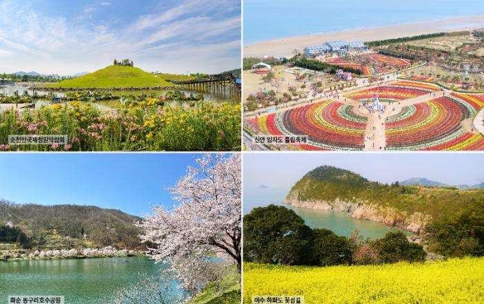 전라남도는 봄꽃이 만발하는 4월, 이달의 추천관광지로 순천만국제정원박람회, 여수 하화도, 화순 동구리호수공원, 신안 임자도 튤립축제를 선정했다고 밝혔다.2023 순천만국제정원박람회는 순천 도심과 순천만국가정원, 순천만습지 등 3개 권역에서 ‘정원에 삽니다’라는 주제로