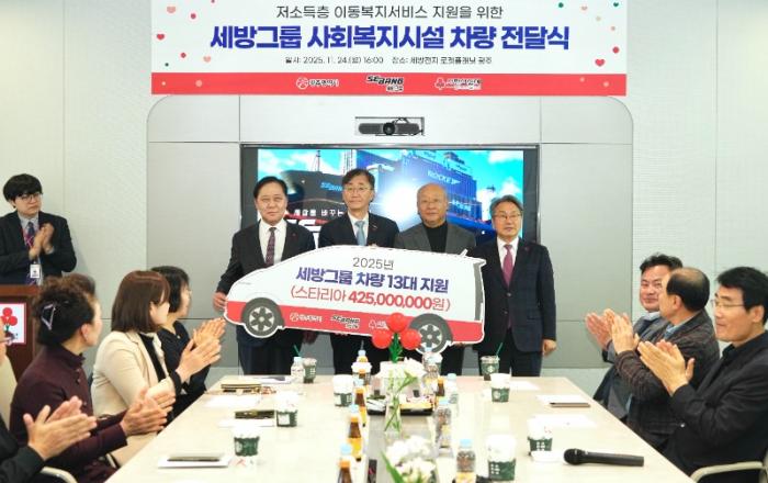 광주광역시(시장 강기정)는 24일 광산구 세방전지 로켓플래닛에서 세방그룹, 광주사회복지공동모금회와 함께 ‘기부차량 전달식’을 열고, 지역 사회복지시설에 차량을 지원했다.이날 행사에는 강기정 시장을 비롯해 박정희 세방전지 대표이사, 구제길 광주사회복지공동모금회장, 차량지