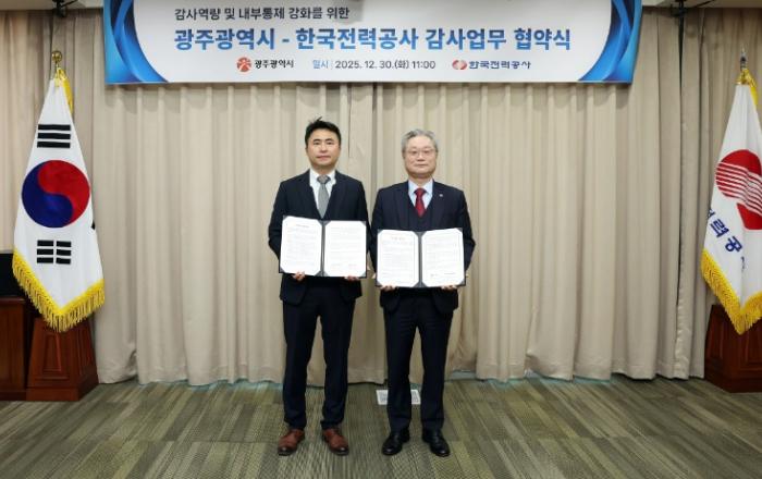 광주광역시(시장 강기정)와 한국전력공사는 30일 나주 한전 본사에서 ‘감사업무 협력 강화를 위한 업무협약(MOU)’을 체결했다.협약식에서 임태형 감사위원장과 전영상 한전 상임감사는 양 기관 감사기구의 상호 발전과 감사 성과 향상에 적극 협력하기로 뜻을 모았다. 주요 협
