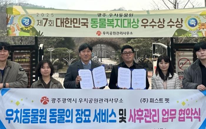 광주광역시 우치공원관리사무소는 최근 ㈜퍼스트펫과 ‘동물 장묘 서비스 및 사후관리 업무협약’을 체결했다.이번 협약은 우치동물원에서 생을 마감한 동물들이 존중받는 환경에서 마지막 절차를 마칠 수 있도록 장묘와 사후관리 체계를 정비하기 위한 것이다.협약에 따라 우치공원관리사