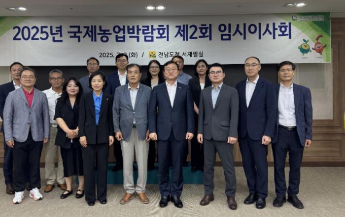 (재)전라남도국제농업박람회는 국제농업박람회 제2회 임시이사회를 지난 8일 전남도청에서 열어 2025국제농업박람회 준비 상황을 공유하고, 추진 방향을 논의하며 박람회 성공 개최에 최선을 다할 것을 다짐했다.이날 이사회에선 명창환(전남도 행정부지사) 이사장과 이사, 감사