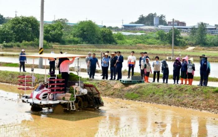 전라남도종자관리소는 올 한해 풍년과 안전을 기원하는 풍년농사 기원제와 첫 모내기 행사를 지난 26일 나주 반남면 들녘에서 개최했다.풍년농사 기원제는 전통제례의식에 따라 진행됐고 풍년과 안전을 바라는 기원문은 집례 경험이 많은 이순문 씨가 낭독했다.초헌례(첫번째 잔을 올