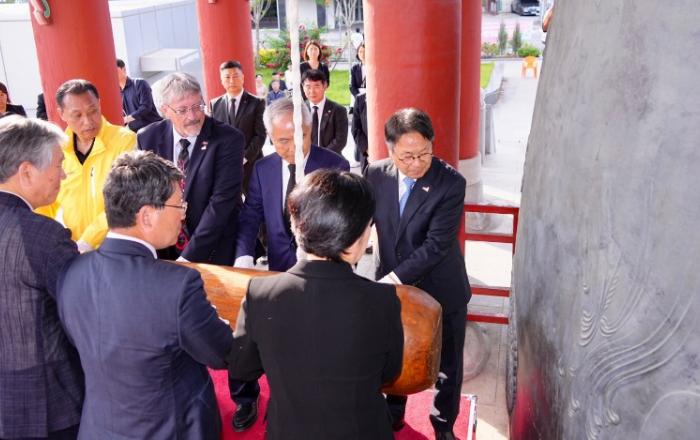 광주광역시(시장 강기정)는 제45주년 5·18민주화운동을 기념하기 위해 5월18일 오후 5시18분 5·18민주광장 민주의 종각에서 ‘민주의 종 타종식’을 진행했다.이날 행사에는 강기정 광주시장을 비롯해 신수정 광주시의회 의장, 이정선 광주시교육감, 양부남 더불어민주당