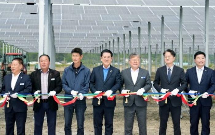 전라남도는 8일 영광 염산면 월평마을에서 마을주민이 주도해 전국 최대인 3MW 규모로 추진하는 영농형 태양광 발전단지의 1단계(1MW) 사업 준공식을 개최했다고 밝혔다.준공식에는 김영록 전남도지사, 장세일 영광군수, 산업부 관계자, 도의원, 군의원, 학계, 발전사업자