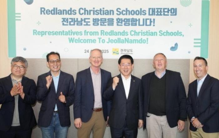 전라남도는 미국 레드랜즈 크리스천 스쿨(Redlands Christian School·RCS) 재단 이사장을 비롯한 관계자들이 24일까지 이틀간 전남을 방문해 솔라시도 기업도시 외국교육기관 설립 방안을 논의했다고 밝혔다.이는 지난 2월 김영록 전남도지사가 미국 현지에서