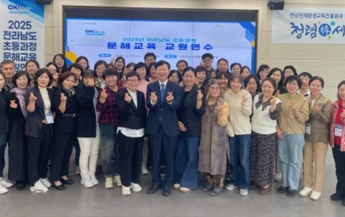 전라남도와 전남인재평생교육진흥원은 24일 2025년 전남도 초등과정 문해교육 교원연수 집합 과정을 성공적으로 마무리했다고 밝혔다.이번 연수는 지난 10일 연수생으로 선발된 40명을 대상으로 문해교육 기초 이론부터 실제 교육 현장에서 적용 가능한 교수·학습 전략까지 폭넓