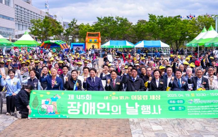 광주광역시(시장 강기정)는 19일 시청 야외음악당에서 ‘제45회 장애인의 날’ 기념식이 열렸다고 밝혔다.‘내☆일이 빛나는 어울림 세상’을 주제로 열린 이날 행사는 (사)광주장애인총연합회가 주최·주관했으며 강기정 광주시장, 신수정 광주시의회 의장, 이정선 광주시교육감,