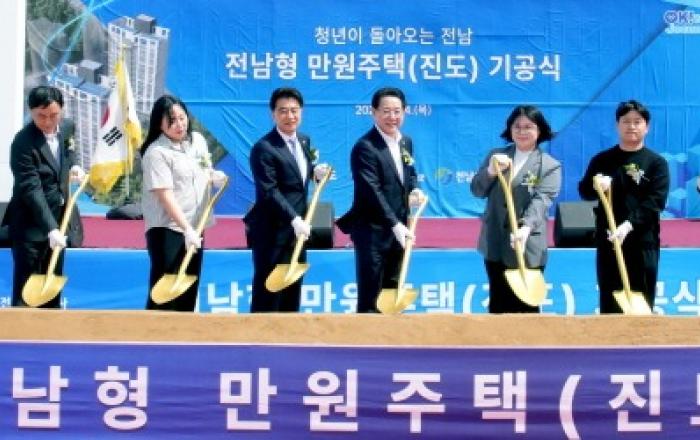 전라남도가 지방소멸위기 극복을 위해 다양한 정책을 펼치는 가운데 인구감소의 주요 원인 중 하나인 청년인구의 유출을 막고, 안정적 정착을 지원하기 위한 ‘전남형 만원주택 사업’이 진도에서 첫 삽을 떴다.전남도는 24일 진도읍 남동리 전남형 만원주택 사업부지에서 김영록 전