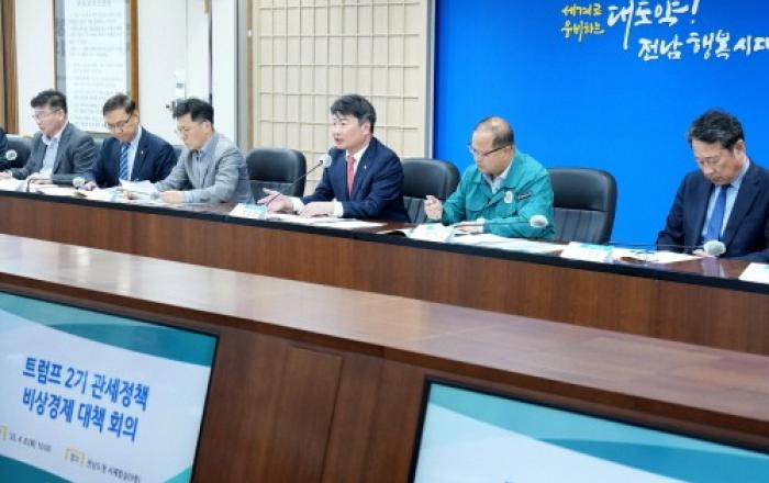 전라남도는 미국 정부가 우리나라에 대해 25% 상호관세 부과를 발표함에 따라 8일 트럼프 2기 관세정책 비상경제 대책회의를 열어 지역 기업 피해 최소화 등 대응 방안을 논의했다.회의는 박창환 전남도 경제부지사 주재로 진행됐다. 전남지역 경제·산업 유관기관으로 구성된 트