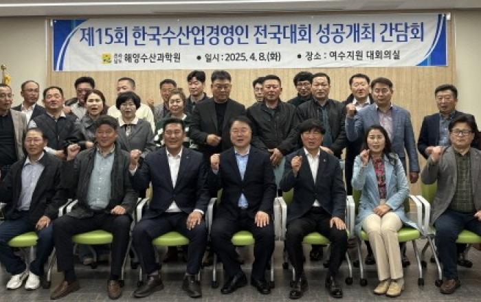 전라남도해양수산과학원은 전남도·여수시 한국수산업경영인연합회와 함께 지난 8일 여수지원에서 간담회를 열어 제15회 한국수산업경영인 전국대회 성공 개최를 위한 다양한 협력 사항을 논의했다.한국수산업경영인 전국대회는 1997년 여수 제1회 전국어업인후계자대회를 시작으로 20