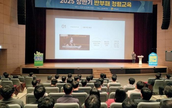 전남도는 청렴한 공직문화 확산을 위해 2025년 상반기 반부패 청렴교육을 지난 3일 도청 김대중강당에서 실시했다.청렴교육은 고위 공직자, 최근 승진자 등 1천200여 명이 참석한 가운데 국민권익위원회 청렴연수원 전문강사를 초빙해 ‘청렴한 세상을 위한 반부패 법령’을 주