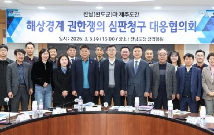 전라남도는 10개 연안 시군과 법무법인 세종, 완도바다지킴이 범군민대책위원회 등 민·관 관계자 18명이 참석한 가운데 5일 도청에서 해상경계 권한쟁의 대응협의회를 개최했다.현재 제주도는 전남(완도군)이 사수도 인근해역에 승인한 풍황계측기 설치와 관련한 공유수면 점·사용