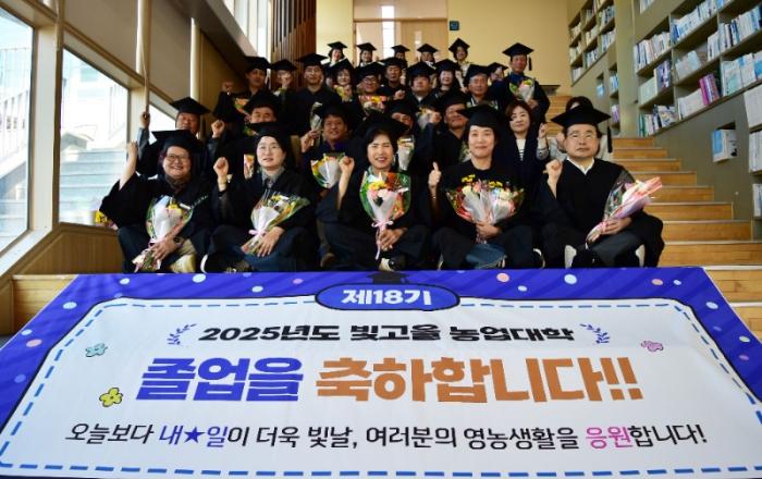 광주광역시 농업기술센터는 23일 센터 스마트농업교육관에서 빛고을농업대학 제18기 특화작목과·신소득작목과 졸업식을 열고 41명의 졸업생을 배출했다. 지난 2008년 개교한 빛고을농업대학은 올해 졸업생을 포함해 총 906명의 전문농업경영인을 양성했다. 광주시는 이들을 중심