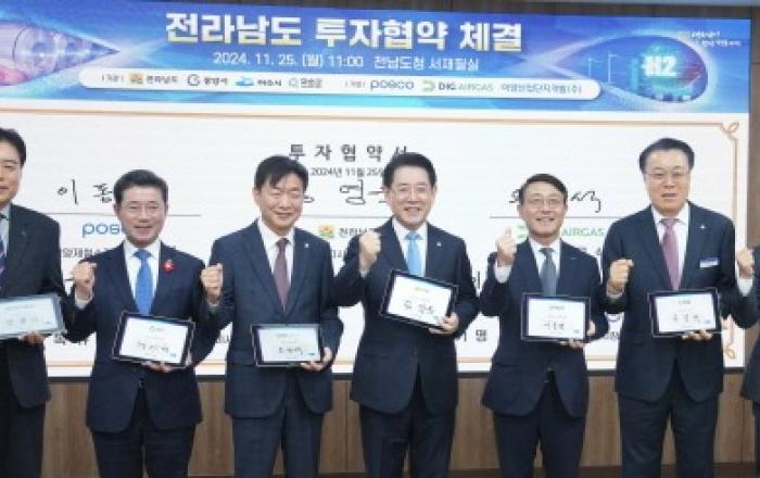전라남도는 25일 도청 서재필실에서 ㈜포스코, 디아이지에어가스㈜ 등 2개 기업과 1조 2천42억 원 규모의 투자협약을, 이양산업단지개발㈜과 60만 5천㎡ 규모의 산업단지 개발 업무협약을 했다.협약식에는 김영록 전남도지사, 이동렬 포스코 광양제철소 소장, 오규석 디아이지