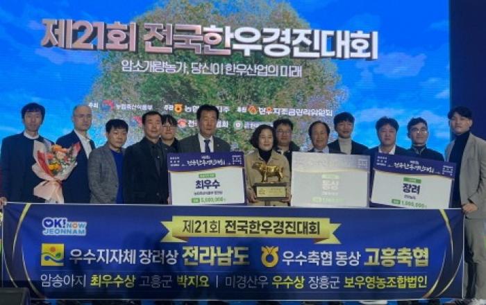 전라남도는 올해 한우 관련 전국대회에 출전해 대통령상, 국무총리상, 장관상 등을 휩쓸며 전남 한우가 명품임을 증명했다고 밝혔다.지난 6일 축산물품질평가원에서 진행한 축산물품질평가대상에선 5천300여 농가 중 영암 박혜림 농가가 최고 영예인 대통령상을 수상했다.지난 1년