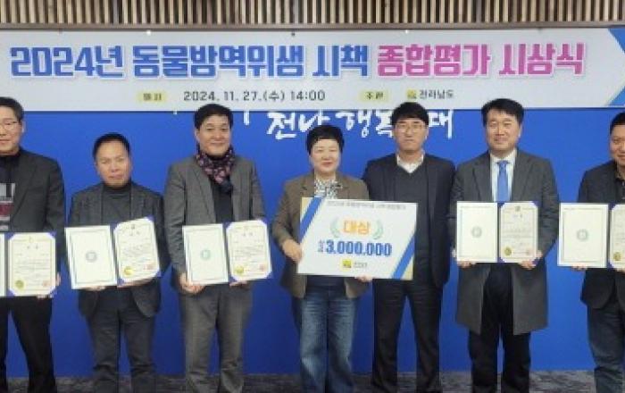 전라남도는 2024년 가축방역위생 시책 종합평가 결과 나주시가 대상을 수상했다고 밝혔다.최우수상에는 함평군·강진군, 우수상에는 영암군·진도군·구례군·영광군을 선정했다.전남도는 우수한 성적을 거둔 7개 시군을 시상하고, 도지사 표창과 함께 대상 300만 원, 최우수 15